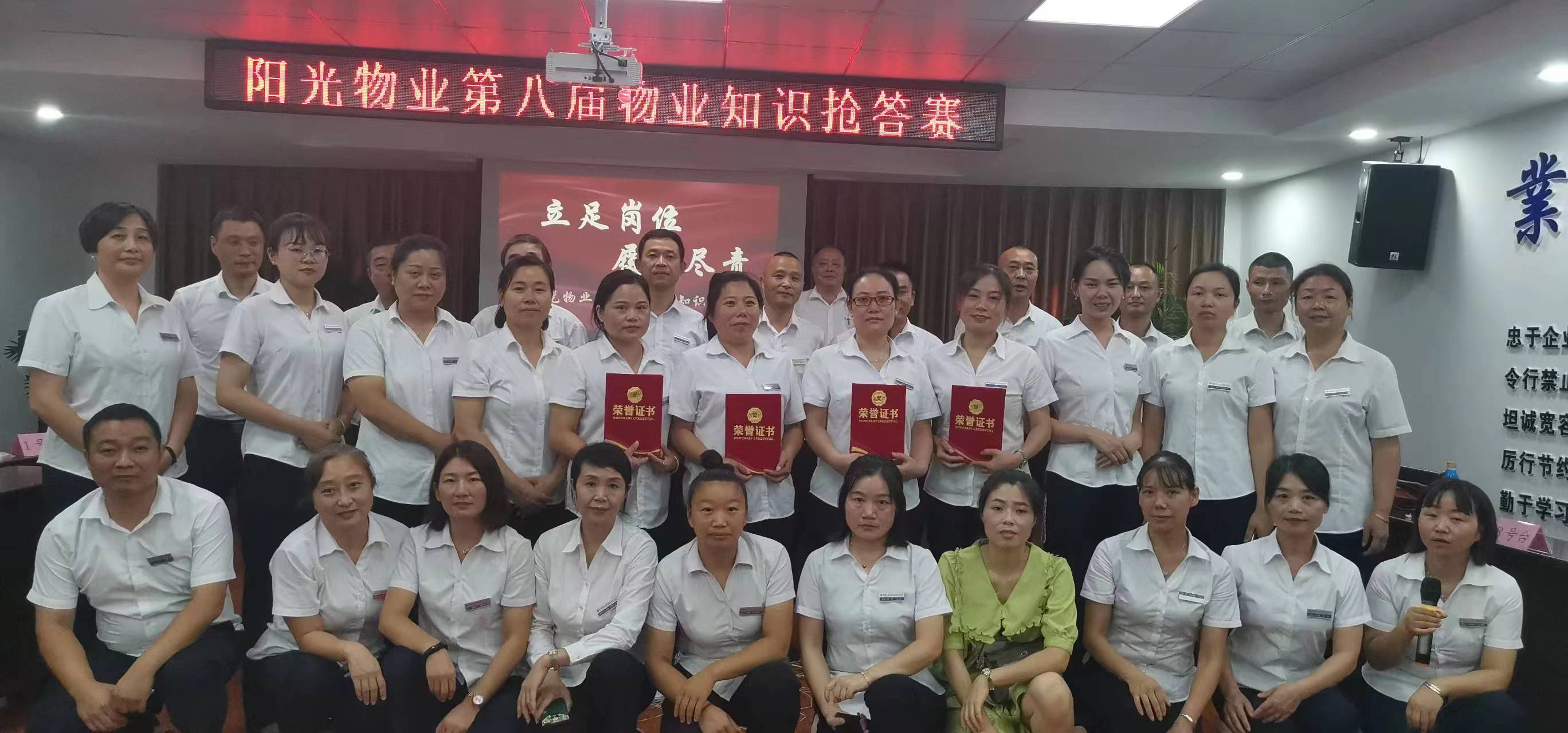 8月13日上午,陽光物業(yè)公司總部會議室傳來一陣陣熱烈的掌聲,“閉路監(jiān)控鏡頭應根據(jù)哪些部位進行區(qū)分?設備房每平方米需要多大的亮度?房屋的建筑主體具體包括哪些部位?”這是陽光物業(yè)、沁園春物業(yè)的全體管理人員在開展“立足崗位、履職盡責”物業(yè)管理知識搶答賽活動。